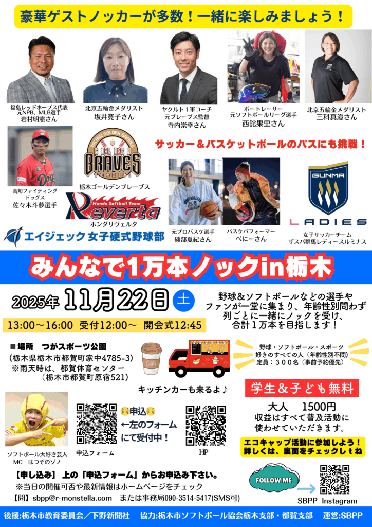 「みんなで一万本ノック11/22」「栃木市女子ソフトボール大会11/23」の会場で